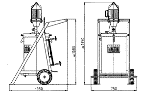 DJBC型电动加油泵车的组成基本上同DJBX型电动加油泵系统,所不同的是它本身带有油桶并固定在小车上,用户只需将购买油脂加入桶内即可。